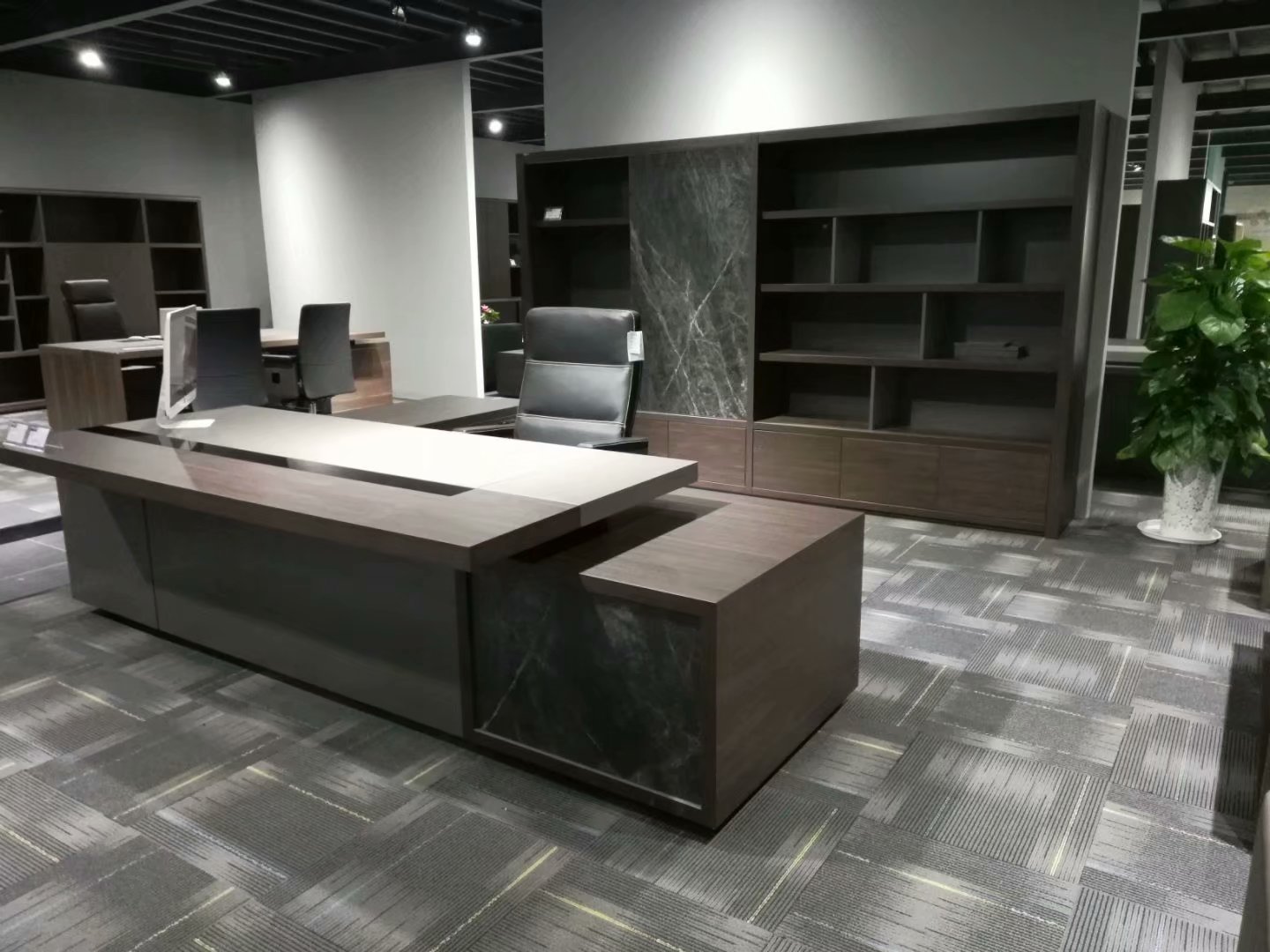 一張足夠大的班臺(tái)能顯現(xiàn)出老板辦公室的氣勢,在費(fèi)用預(yù)算允許的條件下,挑選一張實(shí)木班臺(tái)將會(huì)比家具板材桌更顯氣派。在費(fèi)用預(yù)算不足的情況下,挑選人造板材表層壓貼天然木皮的家具,能夠比純實(shí)木家具節(jié)省一半以上的費(fèi)用。